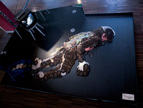 For the inauguration of First Floor Under, a pop-vanguard culture magazine, artists Moreno De Turco and Mirco Pagano spent more than 200 hours lining up the CDs to recreate the portraits of seven world-famous musicians: Bob Marley, Elvis Presley, Jim Morrison, Jimmy Hendrix, Michael Jackson, James Brown, and Freddie Mercury.