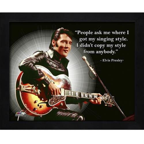 Elvis Presley Framed 11×14 “Pro Quote” #3 : “People ask me where I got my singing style. I didn’t copy my style from anybody.” These super lightweight frames come with an?easel?back for your desk or shelf or are ready to be hung on your wall.