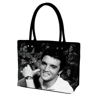 The perfect purse or tote for any Elvis fan. Features an inside zipper pocket, cell phone pocket, and another pocket for your wallet or make-up. Magnetic snap closure. Measures approx. 14″ x 9″ x 4″. The straps are about 8″ long. 100% Satin (exclusive of handles).